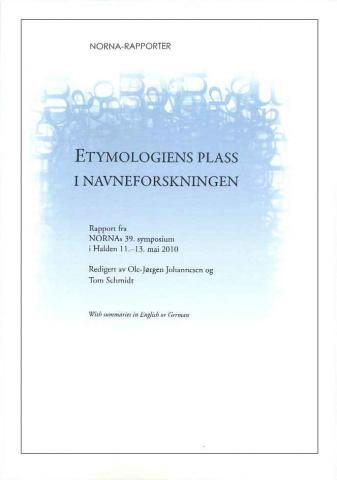 Ole-Jørgen Johannessen & Tom Schmidt (red.): Etymologiens plass i navneforskningen